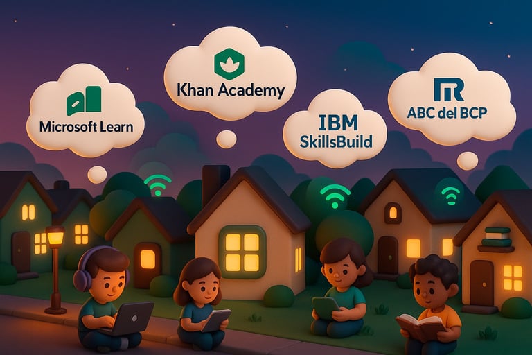 Te recomendamos plataformas gratuitas como Microsoft Learn, Khan Academy, IBM SkillsBuild, Grupo Romero y ABC del BCP, donde encontrarás cursos de tecnología, finanzas, idiomas, negocios y mucho más.