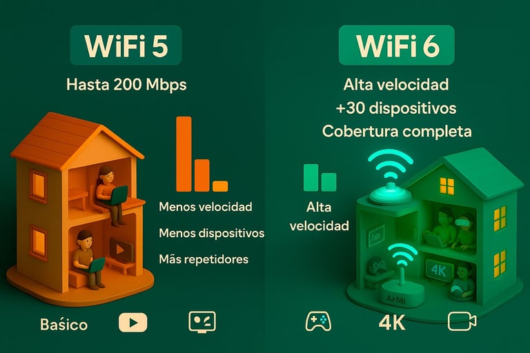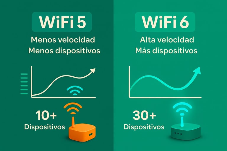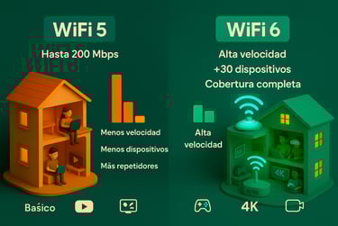 El WiFi 6 es la última generación de tecnología inalámbrica que lleva tu conexión a otro nivel. A diferencia del WiFi 5, que se queda corto cuando muchos dispositivos se conectan al mismo tiempo, el WiFi 6 está diseñado para hogares modernos y oficinas con múltiples equipos.
