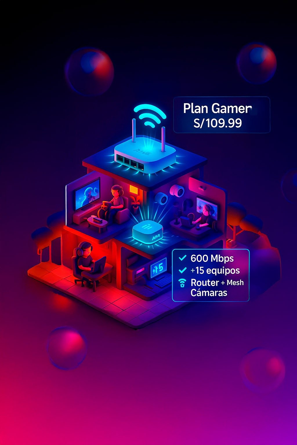 👨👩👧👦 Familias: usa repetidores Mesh para cobertura en varios pisos.