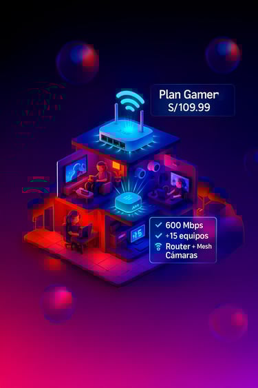 Complementa tu conexión con nuestros equipos exclusivos: TV Box para convertir tu televisor en Smart, repetidores Mesh WiFi 6 para ampliar cobertura y cámaras de seguridad con asistencia garantizada.
